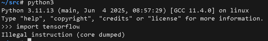 調べてみると、tensorflow1.5以降ではAVX/AVX2拡張命令を使っていて、これが古いcpuでは使えないらしい。
